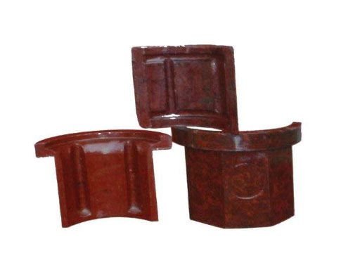 铸石板材有普形、普异形、特异形三大类。普形板材有矩形板、梯形板、六角形板、扇形板、圆形板等;普异形板有弧形板、溜槽镶板、灰渣沟直沟镶板等;特异形板有:双曲面板、锥面板、筛蓖条铸石板及灰渣沟弯沟、变径、汇合口、二岔口、三岔口板等。繁多的设备衬里铸石板均包括在上述类别的制品在内。
