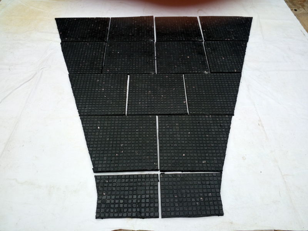 4、硫化粘接牢固:我公司采取可靠的方式以确保运行中不脱落。在硫化前的陶瓷表面处理中,我们采用美国进口的表面处理剂。硫化出的产品即使人为将衬板弯曲360°,陶瓷也不会从橡胶中脱落。我们拥有国内较大较先进的全自动化耐磨陶瓷衬板硫化机,采用电加热硫化工艺,硫化过程中温度控制稳定,提高了产品硫化质量。